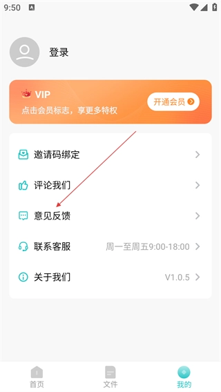 3、在个人页面中,找到【意见反馈】选项,点击进入反馈提交页面。
