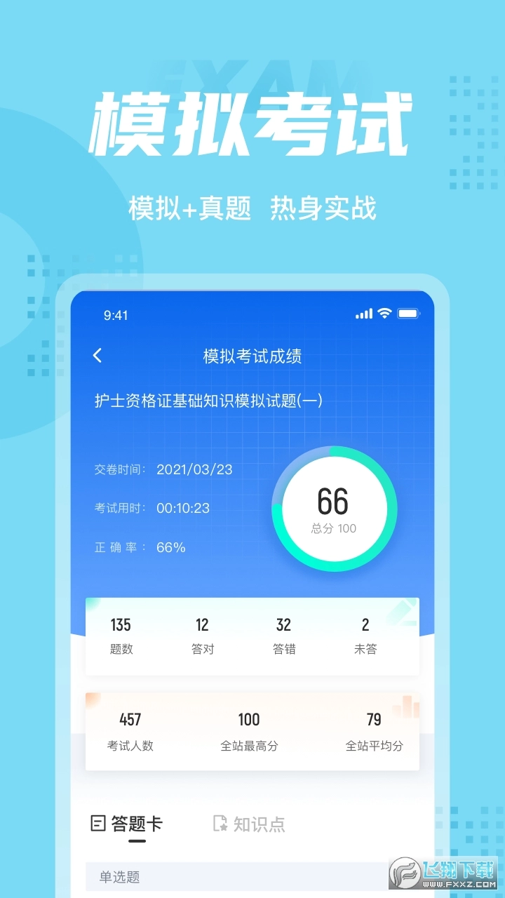 护士资格证题库包含考点专项练习,还有全国通用卷与地区卷的模拟练习,以及依据固定考试比重进行随机抽题的真题考场。成绩单会实时记录考试数据,通过点滴反馈让考生了解近期学习状态和自我正确率的提升情况,从而大大增强考生通过考试的信心。