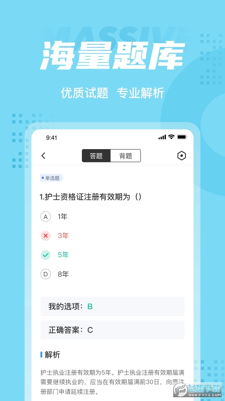 护士资格证考试聚题库涵盖护士资格、初级(主管)护师、护士三基、护理考研等考试的历年真题与模拟试题,所有试题均高度还原真实考试场景,能切实助力考生高效学习、顺利通过考试。