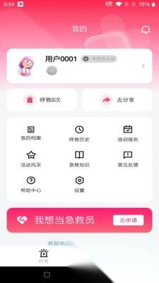 急救员注册功能:支持用户在线申请成为急救员,让你也能帮助他人摆脱个人困境。