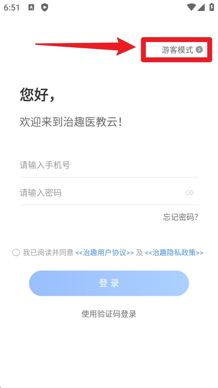 3. 若不注册账号,也可点击右上角游客模式,快速体验应用核心功能,无需绑定信息。
