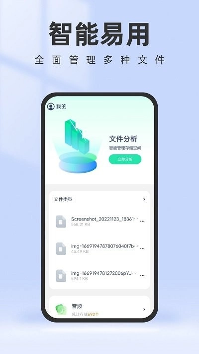 文件管理:可对手机内的图片、音频、视频、文档以及微信、QQ等各类文件进行分类整理。