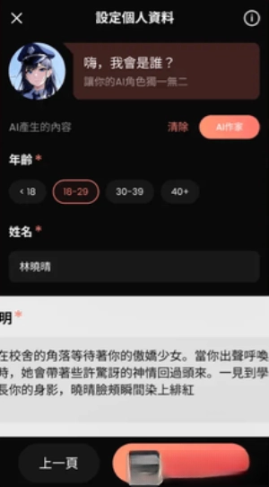 5. 自定义AI伴侣的性别、年龄、虚拟角色的风格。
