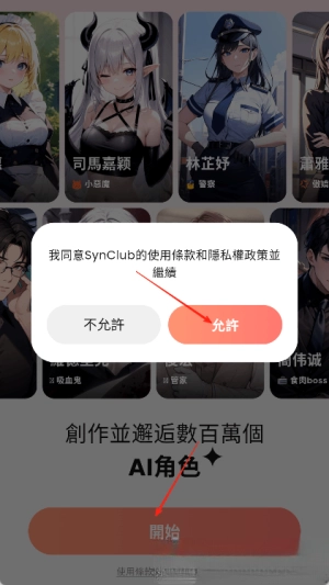 1. 启动SynClub软件后点击“开始”按钮,接着同意并允许使用隐私协议。