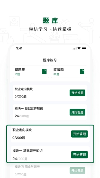帮助用户掌握各类营养功能相关知识,同时提供丰富的考题与训练内容,让用户能随时通过手机便捷地获取信息、体验训练。
