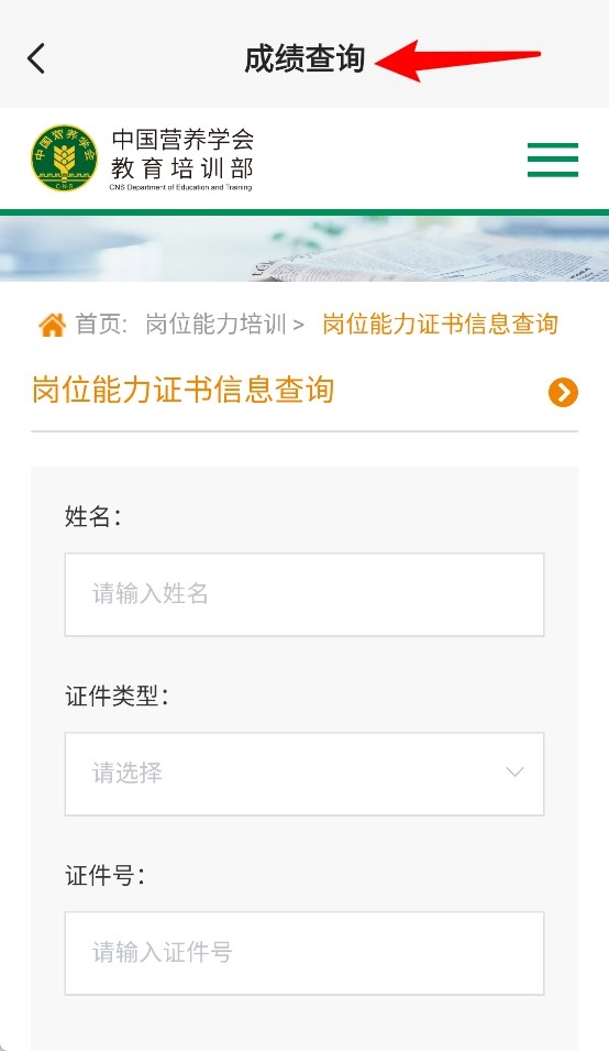 在“成绩查询”功能里填写姓名、证件类型与证件号码,就能在线查看岗位能力证书的相关信息。