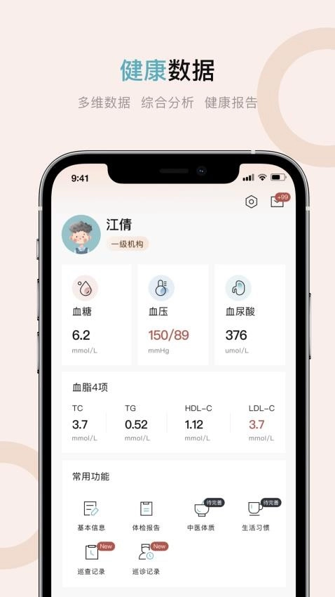 健康档案管理:记录用户身高、体重、血压等基础信息,便于用户随时查阅。