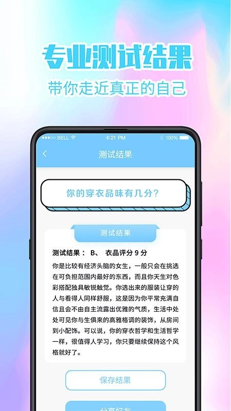 专业性:这款软件由专业的心理学专家团队设计开发,所有测试题目都经过了严谨的筛选流程与科学验证,能够保证测试结果具备高度的准确性和可靠度。