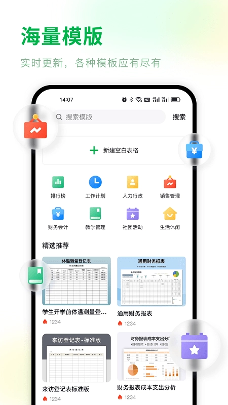 支持使用world模板、PPT模板和Excel模版进行表格文档编辑哦