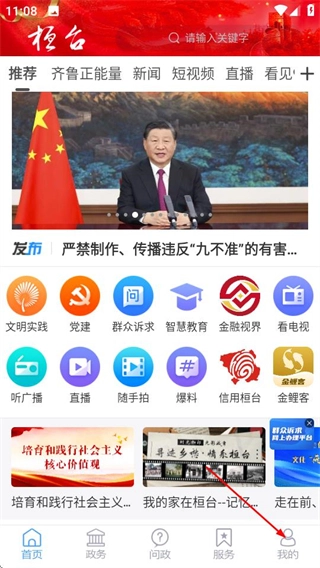 1、在i桓台首页点击我的选项,进入个人中心页面。