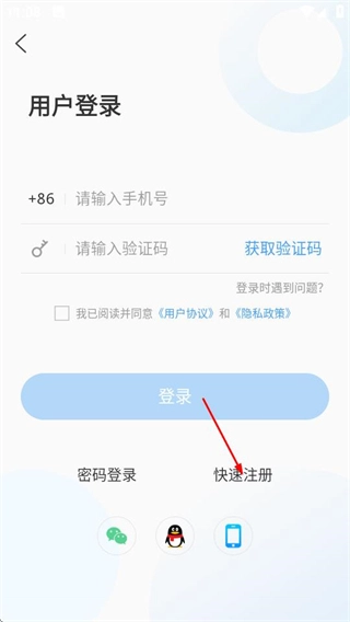 3、在登录页面选择快速注册选项,跳转至用户注册页面。