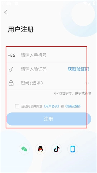 4、于注册页面填写相关信息并勾选协议后,点击注册按钮即可完成账号注册流程。