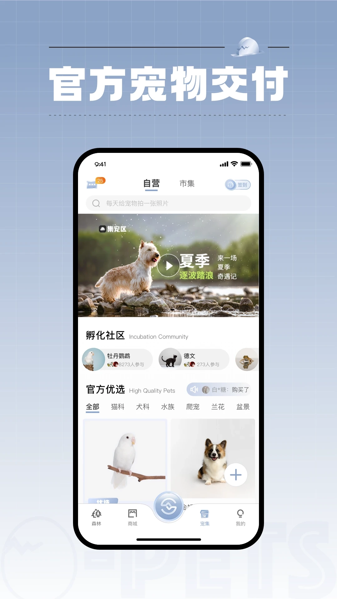 这是一款覆盖全品类的宠物交易软件,核心涵盖了以猫狗为代表的哺乳类宠物,具备互动性的手养鸟类,可供观赏的鱼类水族,以及相对小众的两栖爬行类宠物。在线上市场中,货源主要通过三种渠道输入:宠物主家庭自主繁育并分享、商家专业繁育以及全球高端资源对接。集宠区始终秉持这样的服务理念:助力规范宠物市场秩序,大力倡导健康的宠物文化与文明且富有人性化的宠物交易模式。