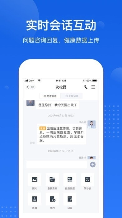 在线沟通工具:配备即时性的在线沟通工具,医护人员能够和患者展开便捷且高效的交流,为患者解答疑问并提供专业的咨询服务。