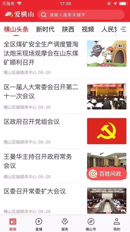 进入新闻板块后,可点击衡山头条、新时代、陕西等子板块来浏览相关新闻内容。