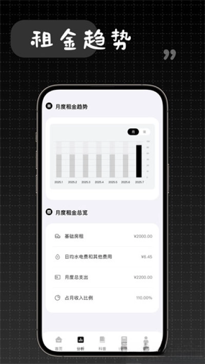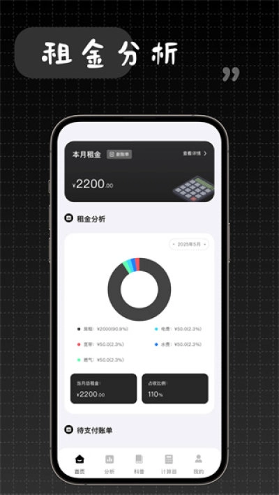 月度开支可视化功能:可自动生成月度开支环形图,清晰呈现“房租”“生活账单”“其他”等类目的占比情况,帮助用户直观掌握固定支出的比例构成。