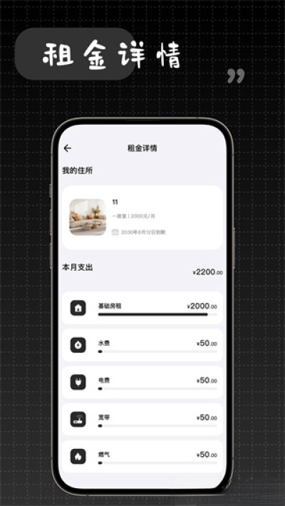 合租账单分摊(核心杀手锏功能):可创建合租账单,仅需填写总金额,系统会依据预设比例(如均等分摊、按房间面积比例等)自动计算每位室友的应缴金额,还能生成专属账单链接,便于催缴款项和核对明细,从根本上解决合租场景中“算账麻烦”的痛点问题。