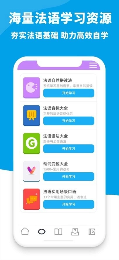 ◆ **游戏闯关式学习**:借助轻松有趣的游戏形式,帮助学习者巩固法语语法、词汇、听力及口语等多方面技能,让法语学习过程更具趣味性。