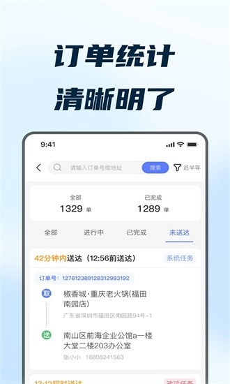 还能为配送员提供高效查询配送订单详情、查看配送数据等功能,让所有数据清晰呈现,一目了然。