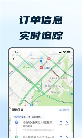 拥有一键接单的功能,能够提高配送员的接单效率,缩短他们的空闲等待时长。