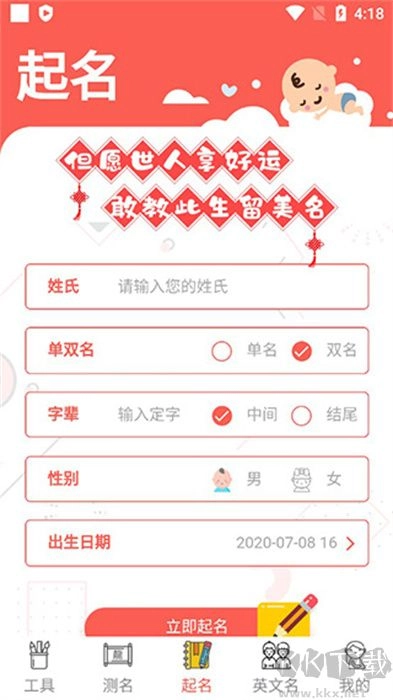 起名多多安卓版是一款专门面向家长的命名工具,家长们可以借助它轻松为新生儿挑选合适的名字。该软件依据生辰八字、五行命理及传统文化来构思名字,力求让孩子的名字既有美好寓意、能带来好运,又蕴含深厚的文化内涵。有兴趣或有需求的朋友,不妨前往kk网站体验一番。