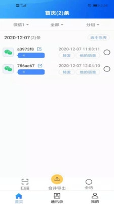 用户可以选择多条语音信息,随后快速完成一键导出操作,并且还能够将这些语音信息进行合并处理。