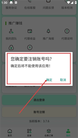 4、点击【账号注销】选项后会弹出确认窗口,再次点击窗口中的【确定】按钮,就能完成账号注销的全部操作流程。