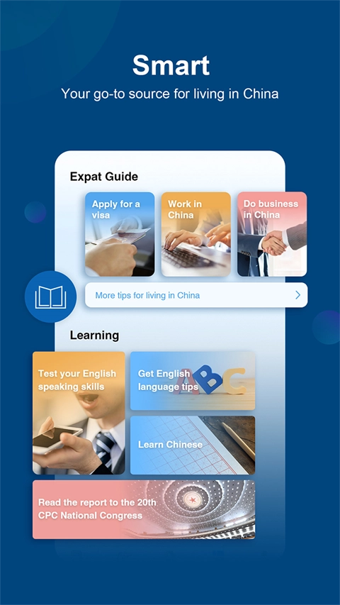 4、实用功能集成:为外籍人士提供签证办理、城市指南等生活资讯,设置【阅读打卡】奖励机制,金币可兑换学习礼包。