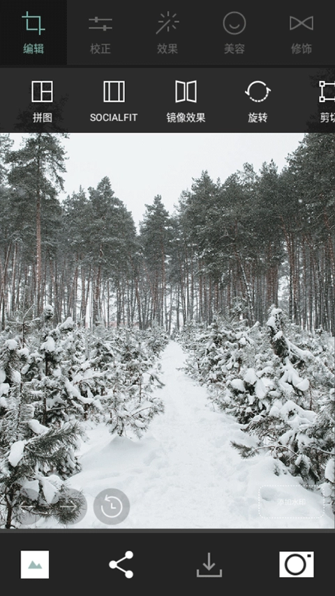 6、图片处理完毕后,点击应用按钮进行保存,也能够分享到各大社交平台。