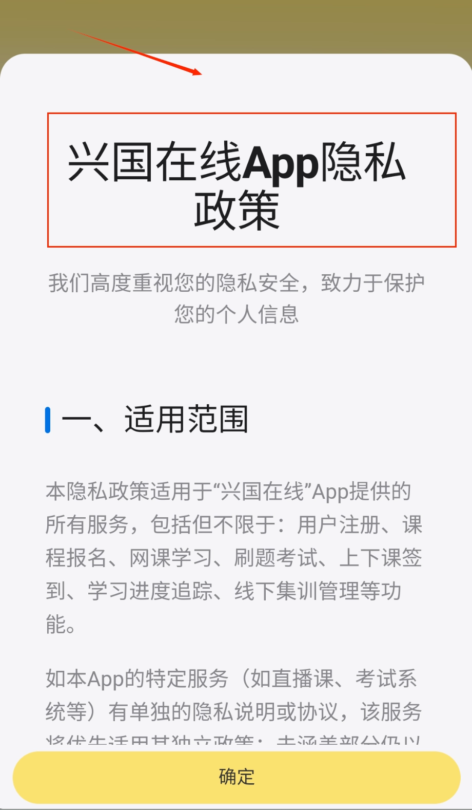 是专为专升本考生设计的备考工具,整合了多省份历年真题与模拟试题,帮助用户高效复习。该平台提供详尽的题目解析与线下课程报名服务,支持模拟考试以还原真实考场环境,助力考生系统提升应试能力。通过智能推送与管理功能,用户可灵活规划学习内容。1、首次打开应用会弹出隐私政策窗口,上方清晰标注兴国在线隐私政策标题,下方详细说明个人信息保护范围与适用场景。