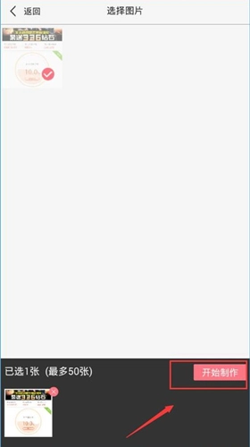 点击批量水印按钮后,系统会跳转至手机相册供您选择照片,选好后点击开始制作即可。
