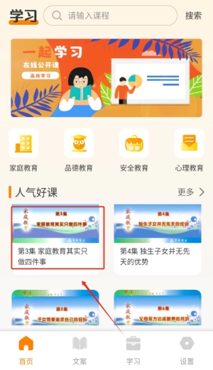 我们的课程体系丰富多元,覆盖家庭教育、品德培育、安全防护与心理健康等多个维度,旨在为用户打造全方位的知识学习平台,助力学习方式向多元化方向发展。