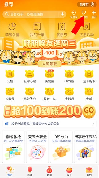 首先我们打开首页,点击右上角的【爱心图标】就能切换到关爱版啦