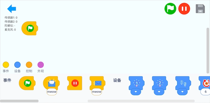 点击执行按钮,执行相应的程序来控制设备。