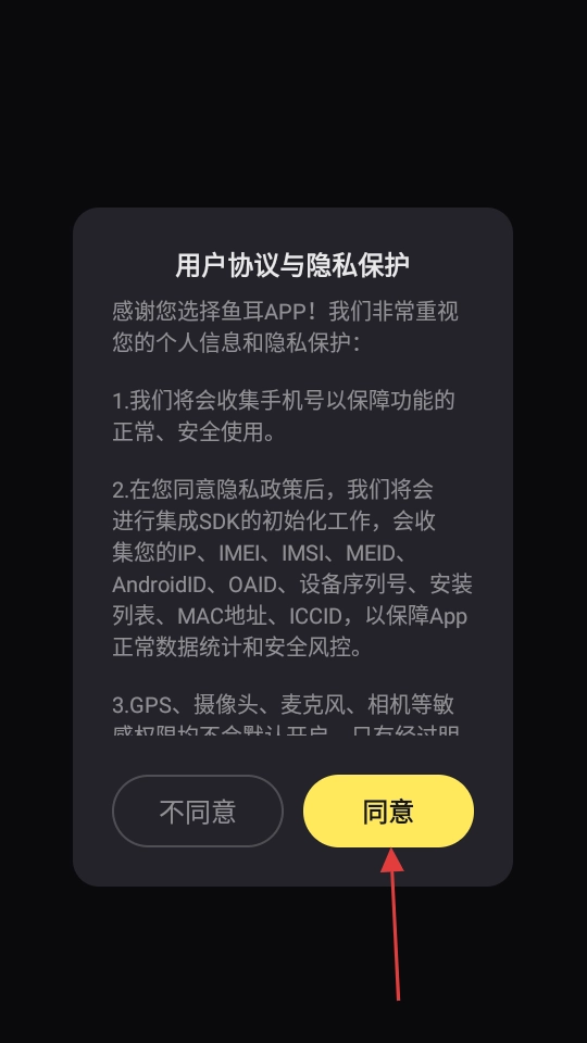 是一款融合语音游戏与创意社交的创新平台,主打海龟汤推理互动与多元化声音场景。集成实时语音连麦系统,搭载百万级音效素材库,支持智能混响与3D环绕音效技术。提供24小时在线匹配机制,覆盖K歌争霸、悬疑解谜等八大社交模式,用户可自定义虚拟形象参与沉浸式声音派对。1、打开,点击【同意】接受用户协议与隐私保护内容。