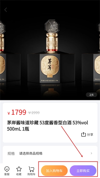 4、在确认好商品相关信息后,点击【加入购物车】或者【立即购买】按钮,以此完成商品的选购流程。