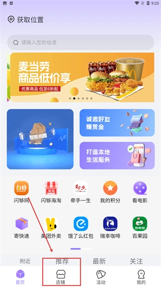 1、打开应用进入首页后,点击【店铺】分类选项,页面会切换到商家展示界面,在这里能够浏览各类品牌信息以及对应的服务入口。