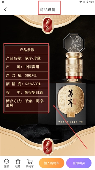 3、在【商品详情】页面,可查看产品参数(像产地、净含量这类信息),以此了解商品的详细情况,为购买决策提供参考。