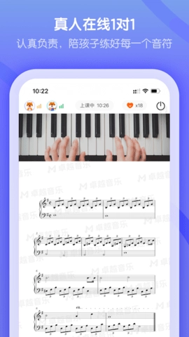 卓越音乐学生端是一款专注于音乐兴趣培养的学习应用,核心服务是通过一对一在线乐器陪练,为用户对接知名音乐院校的专业教师。教师能借助听音辨音的方法,精准解决学生在音准与节奏上的困扰;同时,通过琴键可视镜头,实时纠正学员练琴时的音准偏差、节奏错误,以及手型指法等细节问题。这种量身定制的指导模式,既能有效提升学生对音乐的热爱,也能充分激发他们主动练琴的积极性。