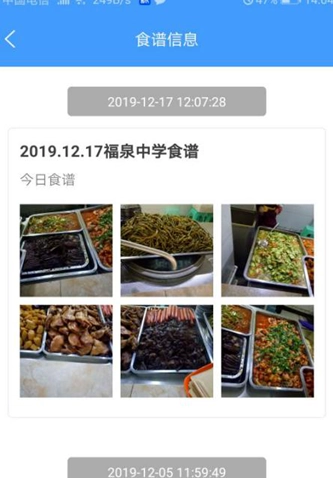 1、教师管理者们每餐都会收到学校的食谱信息,充分了解孩子的饮食情况。