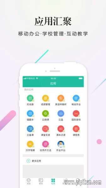 对接开放式应用商店,将内部应用与第三方应用进行整合,覆盖家校沟通、办公管理、在线学习、数字资源、教务教学等多元内容,助力学校搭建统一的移动端门户,满足校园沟通、办公、教学等各类业务需求,为用户提供更便捷、更全面的服务。