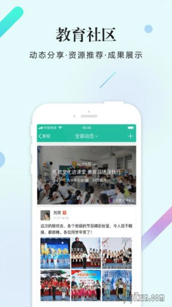 通过即时通讯服务构建便捷的家校沟通场景;借助班级圈完成资源的动态分享、优质内容推荐与成果展示,打造教师、学生、家长三方互动的家校交流社区,同时还设有个人空间与班级空间供展示使用。
