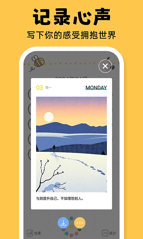 这款软件为用户提供一个安全而私密的情感记录环境,在这里随时随地记录自己的心情和情感体验。通过简单的操作,快速选择表情、颜色或直接输入文字来表达自己的情绪。软件的设计理念是让每位用户都能在繁忙的生活中找到一个属于自己的情感出口,从而更好地理解和管理自己的情绪。