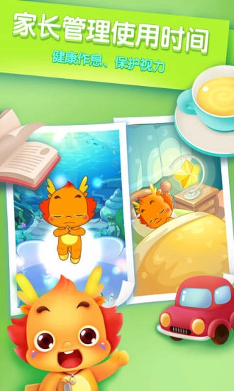 早睡早起:设定好作息时间,不玩耍不吵闹,播放助眠音乐,小伴龙陪着孩子一同入睡,晚安。