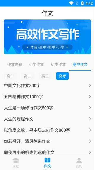 4、每天的学习进度会实时推送给你,再加上课程和作文资源的分类筛选功能,能让学习规划更加清晰明了,帮助你提升备考的效率。