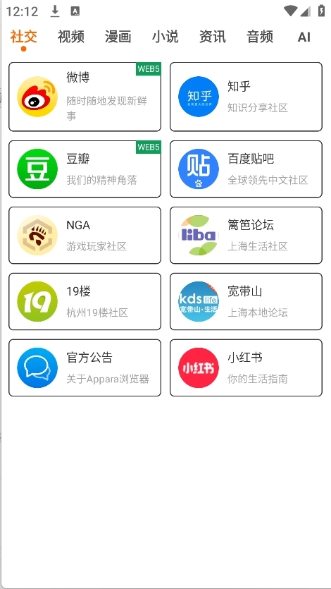 Appara浏览器的主要功能之一是收藏各大网页内容,一键进入。
