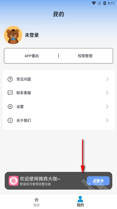 2、点击我的,去登录