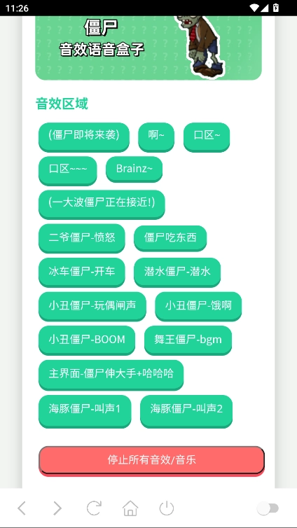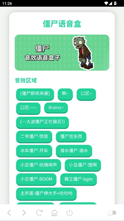 1.首先请在本站安装并打开僵尸语音盒,进入后能看到音效区域包含多种经典音效。
