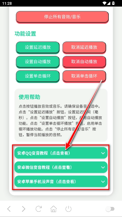 2.随机点击一个音效,就会播放相对应的音效语音。