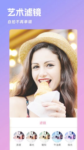 在美美美肤相机中,用户可以选择多种滤镜,包括文艺、萝莉、平淡、优雅等风格,让每一张自拍都能展现不同的魅力。用户可以随心拍摄,管理照片,并轻松制作水印图片,让照片更具个性。美美美肤相机还提供了萌趣贴纸和拍照滤镜等功能,用户可以选择装饰贴纸、炫彩主题、趣味文字等素材,让自己的照片更加生动有趣,避免成为朋友圈的话题终结者。